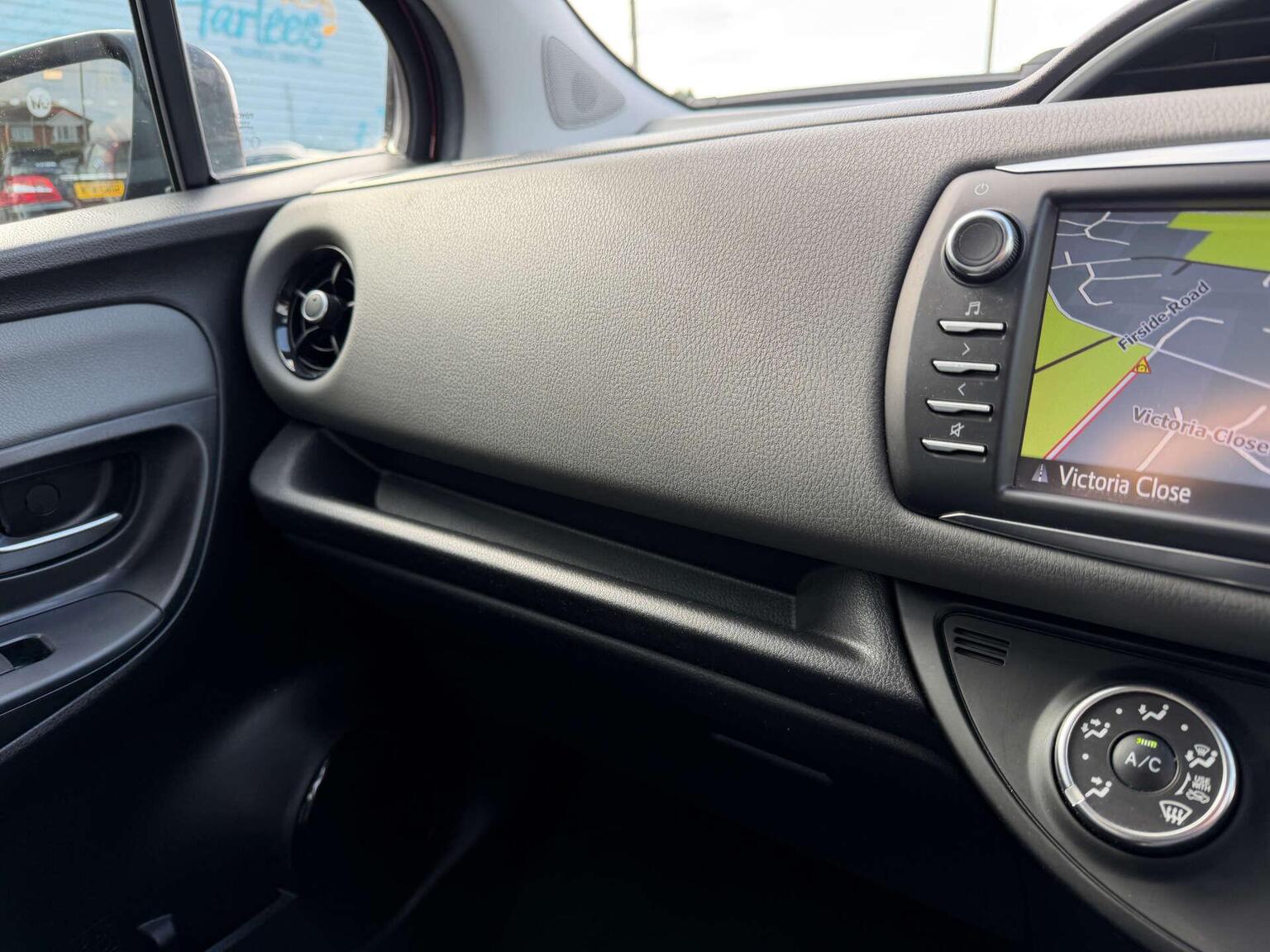 VSC - Vehicle Stability Control, Turning Signal Integrated in Door Mirrors, Toyota Touch 2 with Go Navigation, Toyota Safety Sense, TPMS - Tyre Pressure Monitoring System, TFT Colour Display, Supplemental Restraint System - SRS - Airbags - 7 Airbags, Speakers x6, Space Saver Spare Wheel, Soft-Touch Instrument Panel, DAB Digital Radio, Glovebox, Front and Rear Cupholders, Front Power Windows, Front Passenger Airbag On-Off Switch, Front Fog Lights, Follow Me Home Headlights, Emergency Brake-Light Signal - EBS - Hazard Type, Electric and Heated Door Mirrors, Daytime Running Lights, HAC - Hill Start Assist Control, Cruise Control, Body Coloured Door Mirrors, Bluetooth Connectivity, Black Lower Front Grille, Auto Up and Down Function on Drivers Window, Audio and Telephone Switches on Steering Wheel, Active Headrests, ABS - Anti Lock Braking System, 3-Spoke Leather Steering Wheel, Radio and CD Player, Soft Touch Inner Door Garnish, Seats - Sliding Front, Seats - Drivers Height Adjustment, Seat Belt Reminder - Front and Rear, Road Sign Assist, Reversing Camera, Rear Headrests x3, Rear Combination Lights, Rain Sensing Wipers, 15in Alloy Wheels, Projector Headlights, Power and Remote Door Locking, Power Steering, Parking Sensors - Rear, Manual Rear View Mirror, Leather Gear Shift, Immobiliser, ISOFIX Fixing Points, High Mounted Rear Brake Light - LED